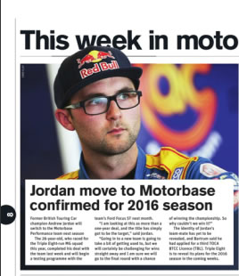 Motorsport News features former BTCC champion and Red Bull athlete Andrew Jordan’s move to the Motorbase squad for 2016.