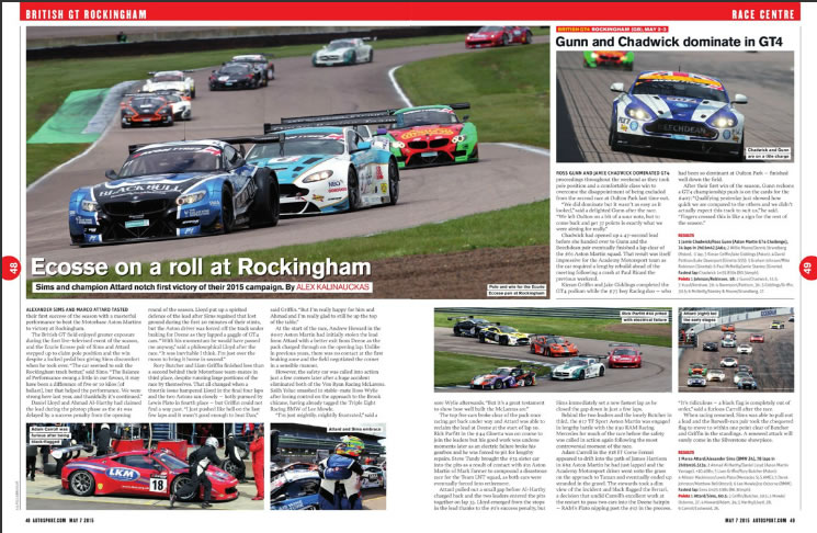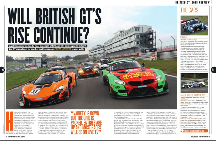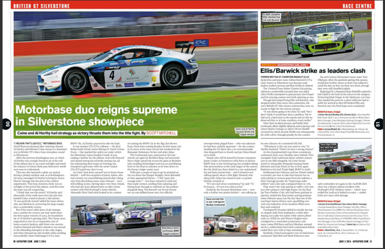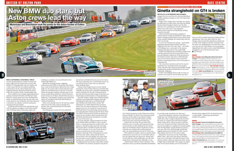 Autosport magazine covers the Oman Racing Team's Oulton Park win in the Avon Tyres British GT championship's 2014 season opener.