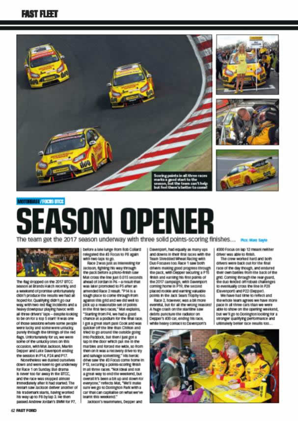 Issue 345 of Fast Ford magazine covers round 2 of the 2014 BTCC at Donington Park.