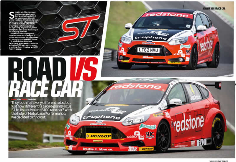 The latest edition of Fast Ford magazine features an 8 page special on the Redstone Racing/Motorbase Performance NGTC Ford Focus ST vs. the Ford Focus ST road car.