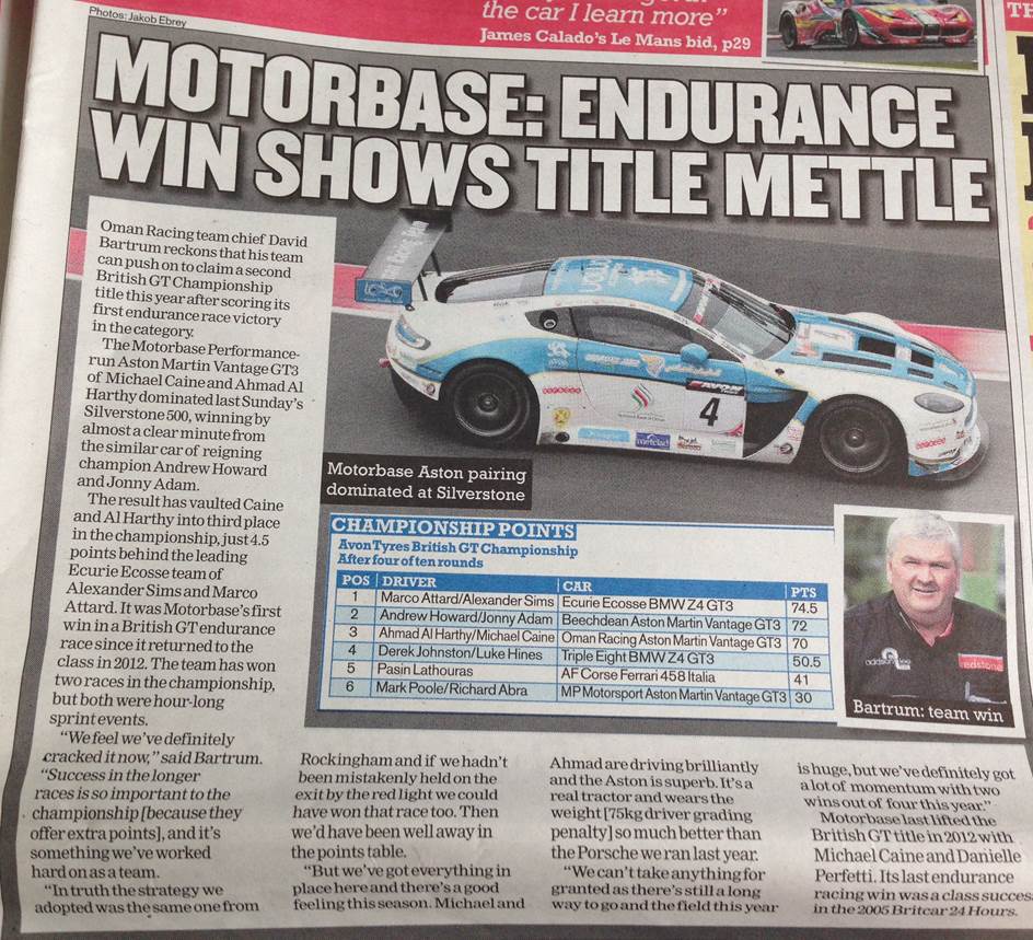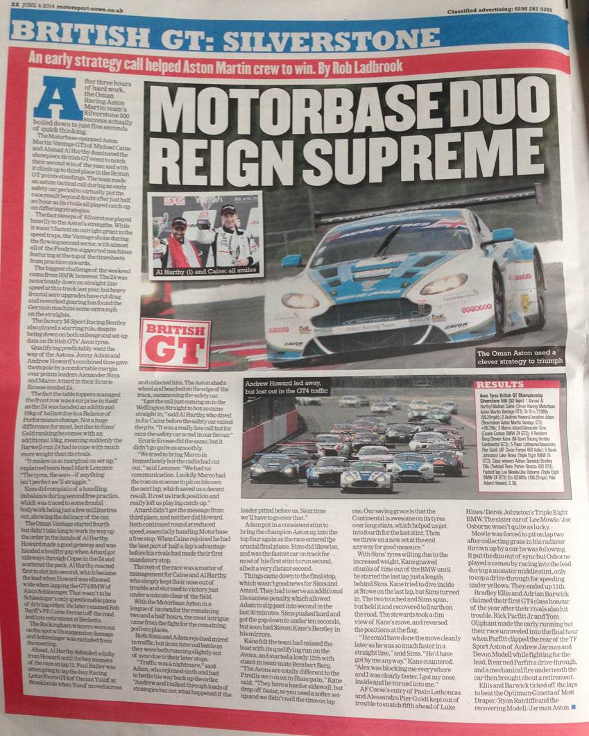 Motorsport News covers the Motorbase/Oman Racing Team's challenge on the 2014 Avon Tyres British GT title.