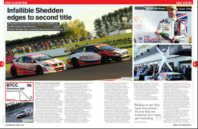 Autosport Magazine 29 October covers Andrew Jordan’s signing to the 2016 Motorbase BTCC squad.