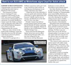 Motorbase signs Daniel Lloyd for British GT and Blancpain Endurance Series campaign.
